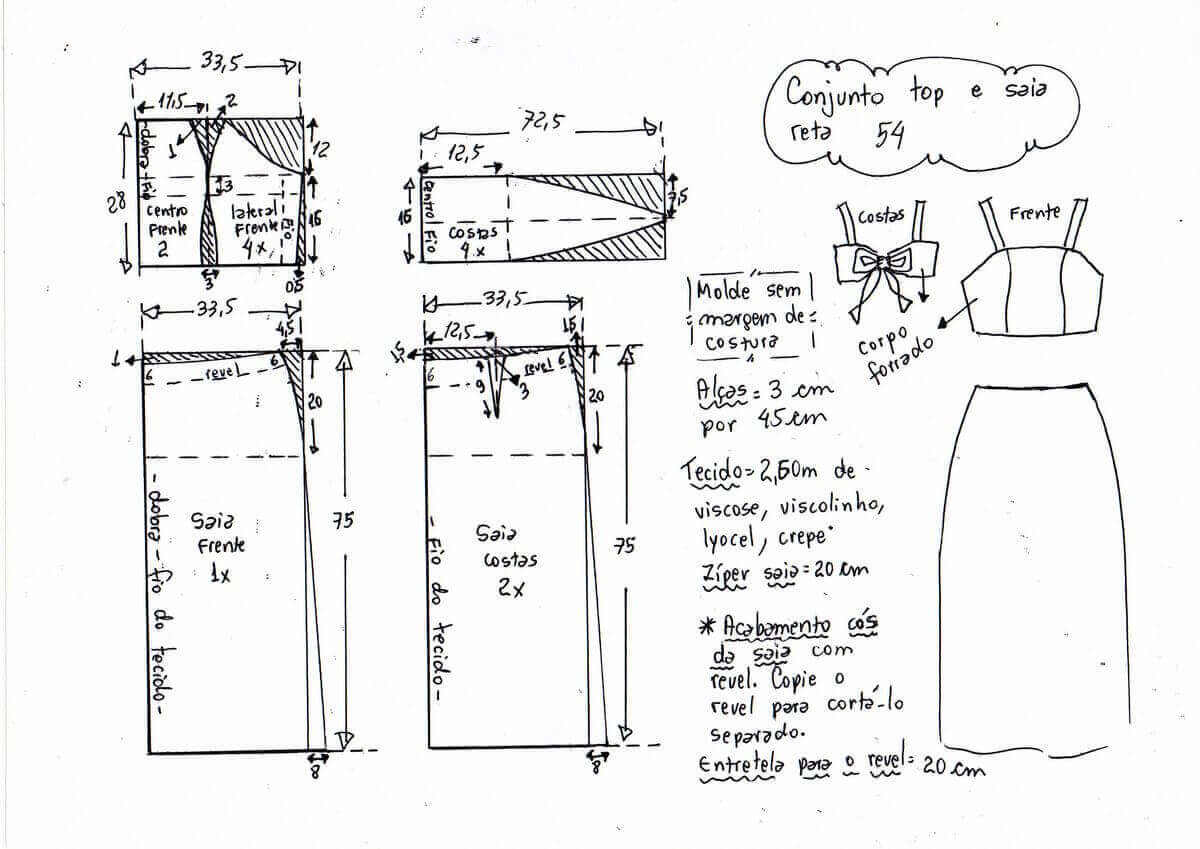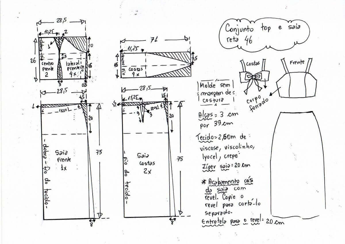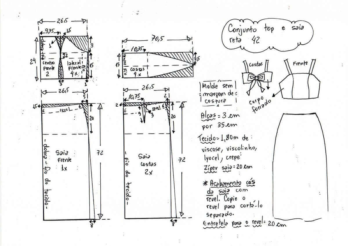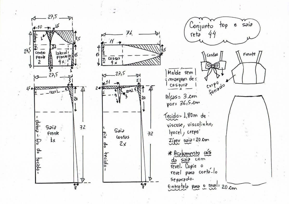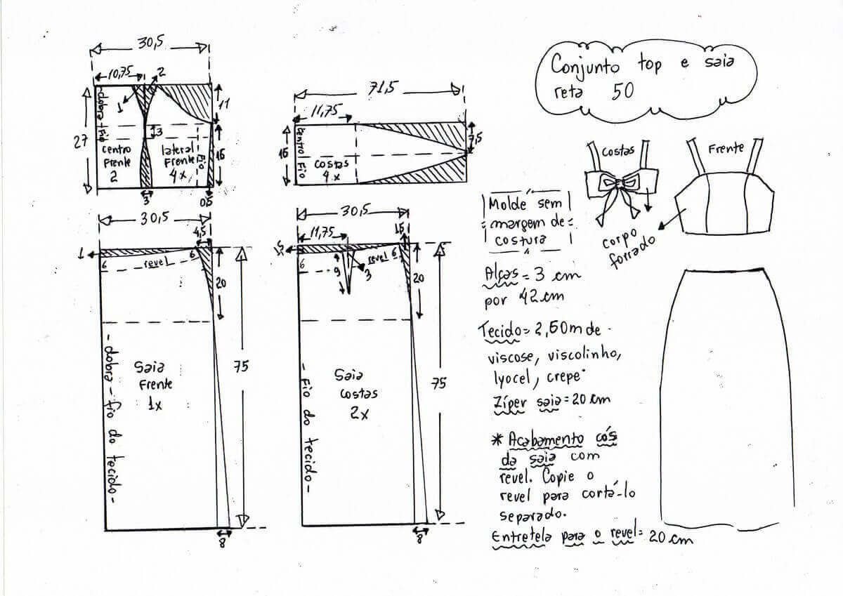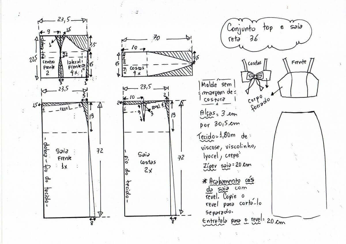 Conjunto de top cropped y falda – Patrones gratis en todas las tallas